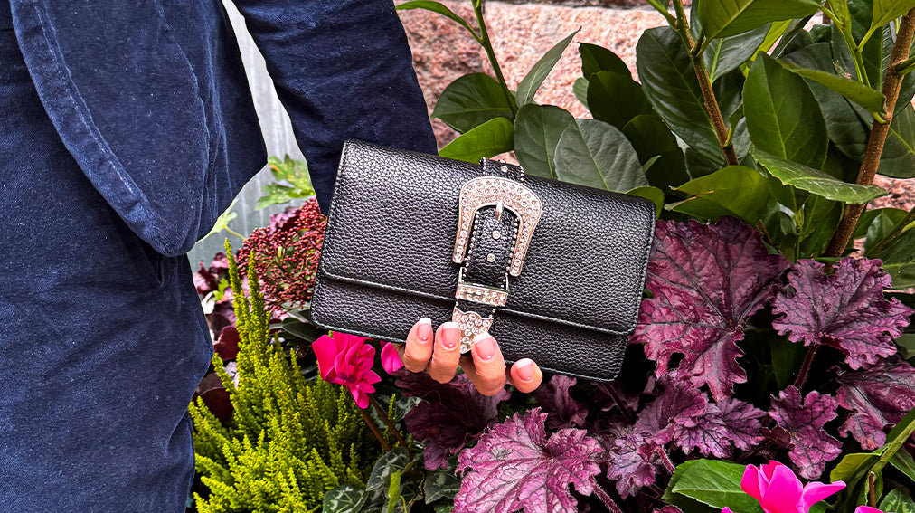 Our scarves are made from Tencel—a sustainable fabric made from wood pulp that’s both soft and kind to the environment. Plus, our handbags are crafted from high-quality vegan leather.